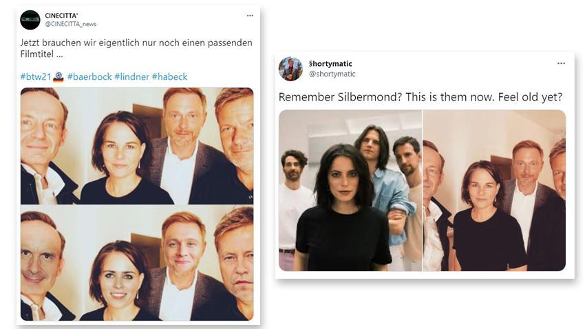 So machen sich Internet-User über das schräge Selfie von FDP und Grünen lustig. Ein Selfie bewegt Deutschland. Wissing Baerbock Lindner Habeck.